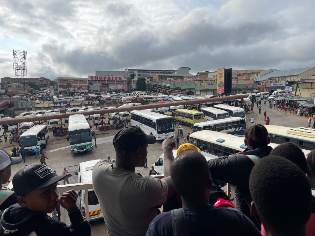 One of my last outings was taking the Grade 6 & 7 (in 3 separate smaller groups) on a public bus to Manzini and spending the day exploring the different sights and sounds of town. Project Canaan has been blessed with our own bus and private transportation, but this is not the case for the majority of the population. Riding a public bus or quantum is something that many of the staff or their own children have been doing since 10 or 11 years old – its just a way of life. So off we went to town. The first stop was the busy, noisy, and overwhelming bus rank. We found a restaurant with a balcony, so the staff were able to explain and make some sort of order out of the chaos and share their own personal experiences of finding the correct bus to get home. We then stopped at an ATM to get money enough to eat lunch and for the return bus fare. Along the way to the town’s library, we discussed how to use crosswalks to cross the street safely. A tour of the library and information on the services of the library system was our next stop, before setting out to locate the different types of businesses and establishments in town. The police station, government offices, post office, banks, and more were on the “walking tour” led by the staff. A lunch of braaied (grilled) meat and quick trip to the local market was enjoyed before getting ice cream at KFC (a staple of any person’s trip to town) then locating the bus that would take us to Project Canaan’s nearest bus stop.