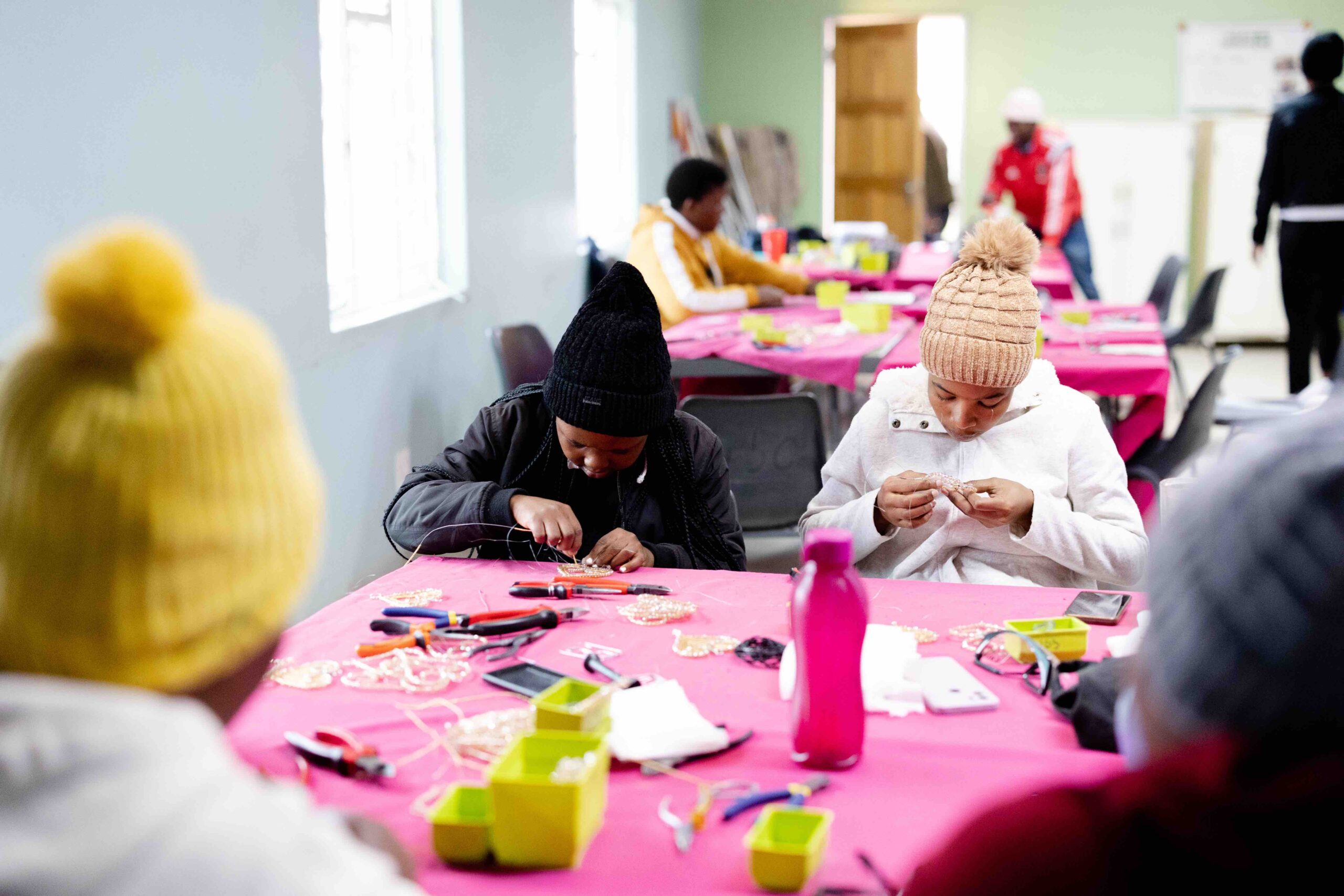 In 2017, she got hired at Khutsala Artisans as a Beader and was able to send her kids to school. Her great achievement was wiring her home which brought safety in her home.
